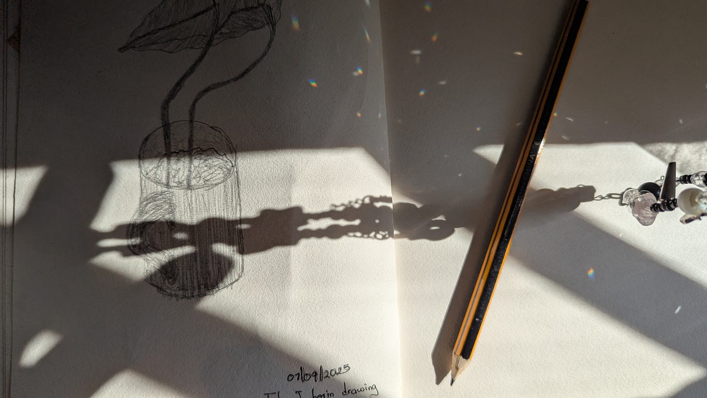 The same friend also mentioned that I needed to draw badly. And I do, not because I want to get better at it, although I think that is a natural by-product of practice, but because it is a special kind of attention that requires you to look at things as deeply as you possibly can. The first thing I ever painted wasn’t inspired but was rather prescribed by a therapist. I think it will be something better to do this all of my own free will. To do it joyfully and terribly.